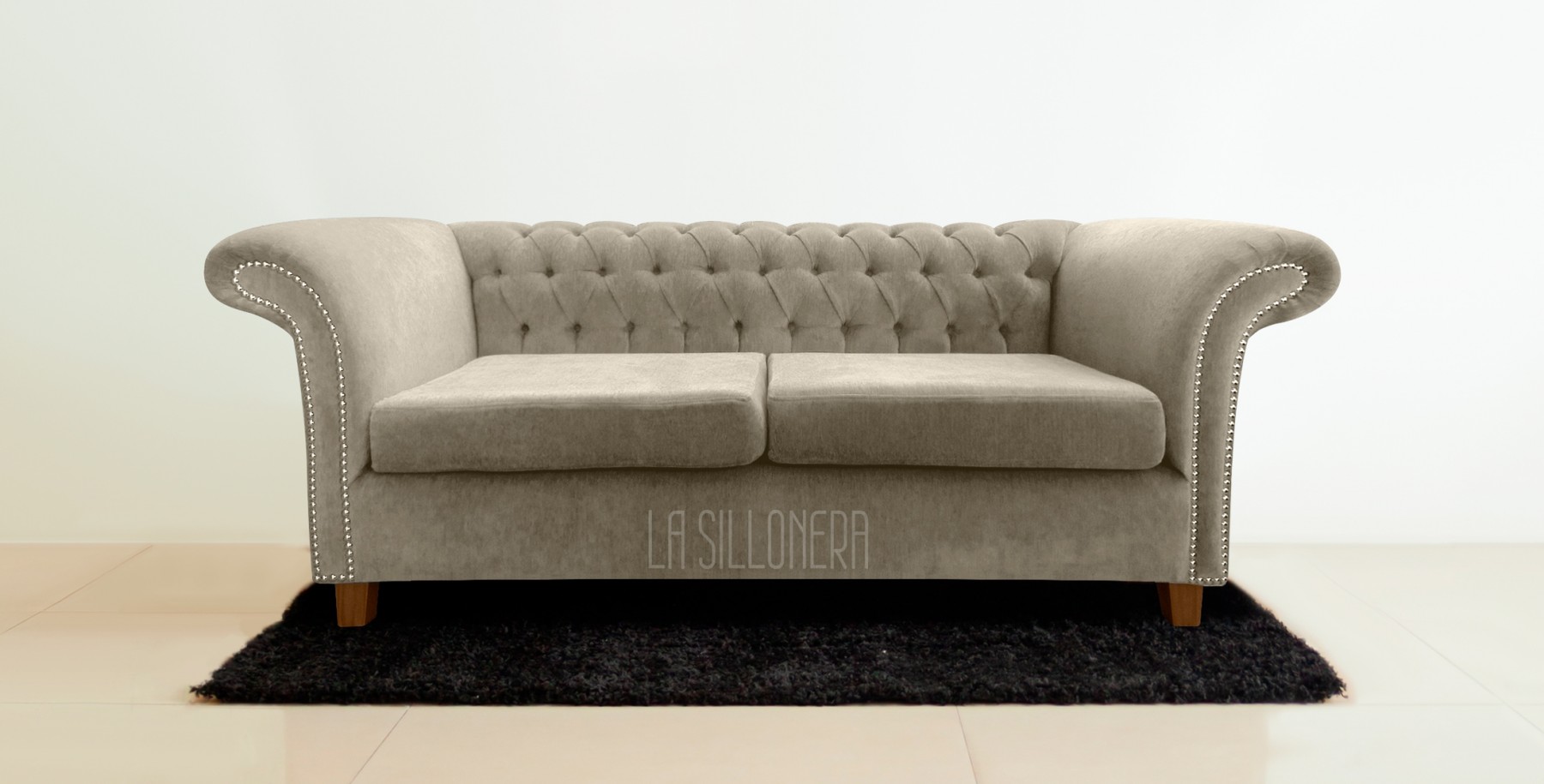 Nuevo modelo, con detalles de capitone y tachas, con apoya brazos abiertos para los costados, un clasico. - Tapizados